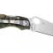 Lame lisse et satinée en acier CPM-S30V (61 HRC) en forme Leaf shape, ouverture avec le pouce grâce au trou dans la lame. profil plat.