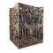 Cabane pliable et facilement transportable grâce au cadre en aluminium léger et à la housse avec bandoulière fournie. La cabane, à base carrée, est formée par quatre murs avec filet de camo bois et, sur l’un d’eux, il y a une fermeture éclair centrale et verticale pour l’entrée.