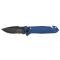 Le manche est constitué de deux plaquettes en polymère chargé de fibres de verre. Ces plaquettes sont vissées à la mécanique par des vis en acier inoxydable dont l'une d'elle loge astucieusement une lame coupe sangle. Cette lame courbe et interchangeable est conçue pour couper des sangles, des cordes et des ceintures de sécurité pour favoriser l'extraction en cas d'accident.