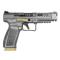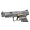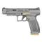 Pistolet 9x19 orienté tir sportif : plateforme polymère équilibrée, ergonomie compétition et équipement complet d'origine, avec une finition Grey distinctive.