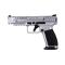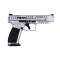 Pistolet 9x19 full-steel orienté tir sportif : stabilité élevée, ergonomie compétition et équipement complet d'origine, avec une finition chrome distinctive et durable.