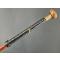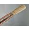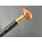 Belle canne Makila basque, pommeau en corne, poignée en cuir tressé monté à vis qui libère une pointe, fut en néflier et embout laiton gravé. Hauteur 90cm