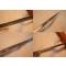 La poignée présente une fente sur toute sa longueur, on remarquera que la soie de la lame est mal fixée à la poignée, elle sedésolidarise, tout comme la chape avec le fût, il faut prévoir de recoller, plus solidement, ces éléments.