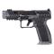 À la fois à l'intérieur et à l'extérieur, le TTI Combat est équipé d'une poignée texturée, un canon cannelé, le premier compensateur CANiK, une détente droite améliorée, des fonds de chargeur TTI-3, une culasse optique ready qui permet d'installer un point rouge MECANIK.