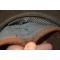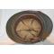 Attribut modèle 1915 de nuance ocre/marron, bien dorigine sur cette coiffure. Coiffe en cuir du 2° type en deux nuances, bien montée d'origine, revers en drap bleu horizon. Jugulaire d'origine.