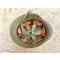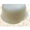En acier, manques parsemés à la peinture kaki, éraflures et petits chocs, deux œillets d’aération.