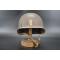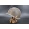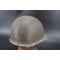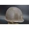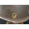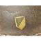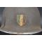 Coque de casque US modèle M1A1 avec insigne bleu blanc rouge frontal en forme d'écu, insigne côté gauche de section de circulation, jonc avant, patte fixe, bonne jugulaire, sans liner interne, coque fissurée à l'avant, bosselée sur le dessus, trace d'utilisation sur le feu. Trouvaille des Hautes Vosges sorti de grange en 2020