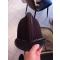 Bombe en feutrine bleue marine avec emblème frontal du Essex And Southend-on-sea Constanbulary, composé de l'étoile de Brunswick, à huit branches en métal chromé, surmontée de la couronne de le Reine Elisabeth II, bord du cimer avec renfort chromé décoré d'une coquille St jacque.