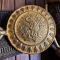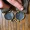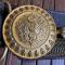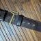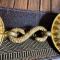 Deux médaillons En laiton à l'effigie du caducée militaire joint par une boucle en serpent à deux têtes , très belle dorures . ceinturon cuir et textile.