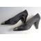 Escarpins Chanel en satin noir, bouts en cuir doré longueur interne : 24/25 cm cm (environ taille 37) avec sac à poussière Chanel très bon état (traces d'usage sur la semelle)