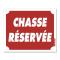 Type: Panneau - Modèle: CHASSE RÉSERVÉE - Coloris: ROUGE - Dimensions: 30 x 25 cm