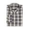 Chemise à carreaux marron/gris. Col boutonné, poche de poitrine boutonnée sur le côté gauche, poignet réglable