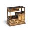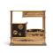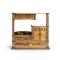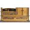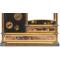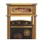 Construit en bois laqué, cet ensemble comprend quatre tiroirs, un placard à portes battantes et un autre à portes coulissantes. Il est orné de motifs hiramaki-e et takamaki-e or, argent et rouge, ainsi que de motifs hirame et nashiji sur fond noir, avec des médaillons floraux et des feuilles d'érable éparses. Les portes coulissantes sont décorées de scènes du Genji monogatari (Le Dit du Genji). Les portes battantes sont laquées imitant le bambou tressé. L'intérieur est orné de nashiji or et de ferrures en métal argenté.