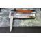 Longueur fermé 15,24cm. Longueur de lame 11.43cm. Lame en acier inox finiton satin. Plaquettes du manche en bois marron. Mitres en acier. Sécurité lockback