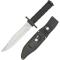 Longueur totale 30.48cm. Longueur de lame 17.14cm. Lame acier inox avec scie sur le haut. Manche en aluminum noir creux. Pommeau avec boussole. Kit de survie dans le manche. Etui simili cuir avec pierre à affuter.
