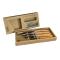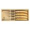 4 pièces acier X46Cr13, L'acier inoxydable X46Cr13 utilisé est un matériau de très haute qualité. Sa dureté rockwell est comprise entre 54 et 56 HCR. manche olivier :