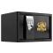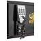 Serrure électronique à combinaison avec clef de secours (nécessite de démonter le boitier électronique). Porte épaisse avec verrouillage par tenons