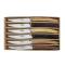 Coffret 6 couteaux table « Le Thiers® » par BJB 23 cm, acier inox Z40C13 brillant, plein manche bois assortis (olivier, wengé, buis, ébène, chêne, bois de violette), en coffret carton.
