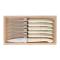 Coffret 6 couteaux steak « LE CAPUCIN » par C. DOZORME, 23 cm inox, manche méthacrylate crème.