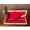 Présenté dans un joli coffret de bois  aux angles arrondis et intérieur d’aspect velours rouge, ce stylet ouvre lettre rempli d’histoire ravira la personne à qui vous l’offrirez. Faites-vous donner en échange une pièce de monnaie, comme le veut la tradition lorsque l’on offre un couteau,  on ne sait jamais !