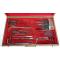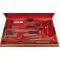 Coffret en noyer 58/34cm signé Charrière à Paris contentant de multiples accessoires de chirurgie, plaque de laiton marquée Me Aiguier Chirurgien de la Marine. Quelques manques dont la scie.