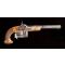 Outre les pistolets le coffret contient : Deux boîte en bois, une pour les balles, l’autre pour les amorces, d’un maillet en bois, d’un huilier, d’un outil tire balle. D’un moule à balle au calibre des pistolets (14mm), d’une poire à poudre décorée d’une méduse entourée de rayons de soleil, munie de son bec verseur. D’une jauge à poudre. D’un tournevis, faisant également office de clé pour démonter les cheminées. D’une tige munie en son bout d’un pousse balle, ainsi que d’une seconde pourvue d’un tire chiffon en laiton. D’un compartiment pour contenir les balles où l’on a ajouté postérieurement un petit entonnoir en bois. Il est muni de sa clé.