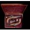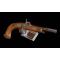 Outre les deux pistolets on y trouve une boite à amorces en bois, une poire à poudre d’époque et le moule à balle au calibre des armes (15mm), ainsi qu’un compartiment pour les balles. Le coffret est intact et son couvercle est muni d’un macaron en laiton ou graver les initiales de son propriétaire.