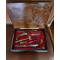 Le coffret comprend le maillet, le moule, la clé à cheminée, poire à poudre qui fonctionne et l'huilier. le tout est magnifque.