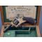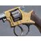 Revolver Tranter de luxe modèle N° 1 breveté en 1862 calibre 22 court vendu par A.M. Reilly & C° à Londres au XIXè, armé disposée dans son coffret noyer monté à l'anglaise à feutrine verte et étiquette d'époque, capacité 7 coups simple action. Bronzage d'origine sur canon à pan signé et barillet gravé, carcasse laiton dans une belle patine, ciselée de rinceaux à l'anglaise et marquée W.Tranter's Patent N°31870. Canon de 63mm à pans, dévissable, avec de très belles rayures bien nettes d'aspect brillantes. Mécanique complète au fonctionnement irréprochable, toutes pièces d'origine sans aucun jeu. Crosse monobloc en noyer finement quadrillée sans usure particulière, calotte laiton où est vissée sa tige d'éjection. Chien et détente bleui, huilier dans le coffret dont manque le médaillon de la serrure.