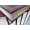 Les ouvrages de centaines de pages sont reliés imitation cuir avec un riche décor or et rouge.