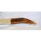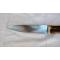 Interessante coltello “artigianale” foggiato interamente “a mano” negli anni 90 da artigiano abruzzese locale, dedito alla realizzazione di coltelli. Il "manufatto" in argomento, che ben si presta sia per uso “caccia” che “domestico” in cucina, non vi nascondo di averci già affettato con “ottimi risultati” più di qualche salume.., è stato realizzato con una bellissima impugnatura stile “montagna” in corno di cervo e lama in lamina di acciaio ben affilata. Più in generale, si presta anche come oggetto da ornamento in casa. Lo stesso si presenta in “ECCELLENTI” condizioni di conservazione senza ne difetto, rottura e/o mancanza alcuna. Misure: lunghezza complessiva = 310 mm; lunghezza lama = 157 mm.