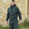 Combinaison de pluie en semi-PU imperméable avec une grande capuche resserrable par cordon, une double fermeture à glissière injectée sous pattes, des poignets coupe-vent, des bas de jambes avec patte de resserrage, une taille élastiquée dos, des coutures thermosoudées étanches et un petit passepoil rétroréfléchissant sur patte devant. Composition : (360 g/m² - étanche et robuste). Enduction : polyuréthane, PVC - étanchéité : 5000 mm. Tissu : 100% polyester. Tailles : S au 4XL. Coloris : Kaki.