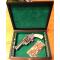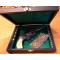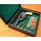 COMME NEUF, TRES BEAU COFFRET NOIR ET VERT INTERIEUR POUR 1 REVOLVER USA SMITH ET WESSON SAFETY 3ème MODEL CAL:38 + SES 2 RAMPES COMPTANT UN TOTAL DE 26 TROUS - Vendu en occasion comme neuf - Couleur: (Noire avec feutrine intérieures verte et rampes colorées vertes également) Le tout en excellent état - Très bonne qualité de fabrication + Super état - Je vais vous donner les dimensions exactes de ce coffret: Longueur utile entre les rampes = 19,3cm - Largeur utile =17cm - Profondeur + couvercle compris = 4,5cm - Poids à vide sans arme ni munitions = 560 grs - Dans ce coffret, votre beau 38 sera a l'abri à bonne température et hors humidité - Eviter de relever ou retourner votre coffret lorsqu'il est plein merci - Ce dernier en photo vu sous différents angles vous donnera une idée de ce que vous pourriez faire pour l'embellir, l' améliorer en rajoutant d'autres ingrédients ex: goupillon-outils-brosse- etc- Fermeture métallique simple et facile -