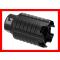 En CQB ou en milieux confinés, tels qu'un véhicule, le compensateur redirige le blast du tir vers l'avant, n'entrainant aucune gène ou déstabilisation pour le ou les tireurs à proximité.