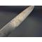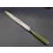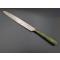 Long couteau à servir France 19è lame signée Palmer plate à dos et simple tranchant de 20cm, poignée en bois de couleur vert à mitres en métal argenté. Longueur totale 31.5cm