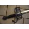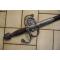Epée Rapière XVIIe siècle, fabrication ancienne Coulaux à Klingenthal, "Coulaux a & c" (ainé & cie) à "Klingenthal" (avec B couronné), bien datée vers 1845, reproduction d'époque Viollet le Duc (Napoléon III). Monture en fer forgé, fusée filigranée de fer, garde à deux grands à quillons inversés, pas d'âne et pitone, gravée et ciselée de coquilles, lame droite en acier forgé à arête médiane, fourreau en bois à deux garnitures en fer gravées de rinceaux, ensemble en très bon état. Longueur totale 95cm, longueur lame 75cm, talon 2,6cm.