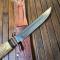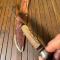 Manche en bois de Cerf naturel, pommeau aluminium, lame marquée 461 et gravure de la marque.