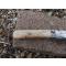le manche d'origine n'avait qu'un clou au talon , monté en plate semelle , je lui ai donc rajouté deux autres (des clous de couvreurs) , il en possède Trois dorénavant , deux en acier dont j'ai laissé les tetes et celui d'origine en cuivre que j'ai remis en tête. MOntage sous presse à la résine époxy .