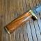 Pommeau et garde en laiton , manche monobloc en bois de noyer, lame forgé type brute de forge , pleine soie .
