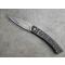 Couteau artisanal pliant liner-lock, ouverture assistée, lame damas VG10, 97 x 23 x 2.4mm, platines titane Gr5 qualité aéronautique, ép25/10e, pivot inox trempé Ø 4mm M3, sur bagues à billes, manche Fat Carbone, visserie inox, Dim ouvert/fermé 212/122mm, poids extra léger 125g. Livré dans sa boite métallique. Pochette cuir offerte. Frais de port offerts.