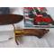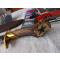 La poignée est faite d'un énorme merrain de cerf Sambar est gravée à son talon d'une étoile, elle est rivetée à la soie et emmanchée dans une épaisse garde en laiton massif avec virolle.