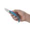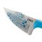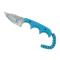 Couteau de cou CRKT « MINIMALIST BOWIE CTHULHU », lame bowie 5,5 cm acier 8Cr13MoV satiné avec motifs, manche et étui polypropylène bleu « glow-in-the-dark », avec cordon paracord bleu.