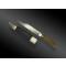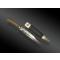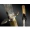 Lame droite à un tranchant et un contre tranchant, ricasso à pans concaves de 3,2cm de largeur, Dos à forte épaisseur.