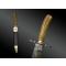 Poignée en corne claire ; bouterolle et mitre en maillechort.