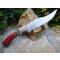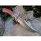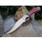 Poignard Couteau de chasse à lame fixe - Longueur totale 24cm - Longueur de lame 13cm - Lame en acier carbone 1055 - Lame type clip point plain edge finition miroir - Construction d'une seule pièce - Mitres en nickel - Full tang - Plaquettes du manche en bois couleurs d'automne - Etui simili cuir -