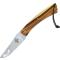 Lame de 8 cm en acier inoxydable brossé 12C27 Lame pliante lisse Plein manche en pistachier avec lacet cuir de 11 cm Système de fermeture par cran forcé Longueur totale 19,6 cm Poids 86 gr