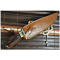 Je connaissais PERKIN de part sa réputation, et franchement ici elle n'est pas usurpée ! C'est du sérieux ! C'est du lourd comme on l'aime, et ceci dit; tant au niveau des finitions que de la qualité des matériaux utilisés ! C'est vraiment une très belle lame massive, au tranchant effrayant ! Son manche en soie tendue sur un empilage de laiton, bois clair et ébène est super classe, avec en prime une prise en main naturelle, son fourreau cuir pleine fleur est tout simplement magnifique !