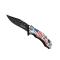 Couteau CJH, lame noire acier 420 avec « flipper », à cran intérieur et à bouton, manche 12 cm ABS décor imprimé 3D carte de la Route 66 au recto et noir au verso, avec clip, pic brise-vitre en bout et coupe-ceinture de sécurité.