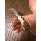 Plaquettes en bois de Cerf sans accident lame très tranchante fil sans accident, légère traces d'oxydation localiser. Resort très ferme pas de jeu.
