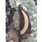 Voici  un couteau  original  , pour les  amateurs de belle pièce ; manche  corne de  belier façonné de chaque côté de defenses de sanglier striées .